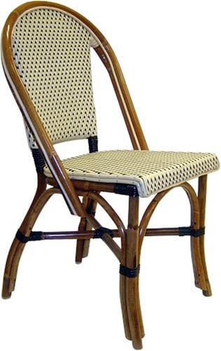 Give your patio or deck a classic look with this black and white rattan french bistro chair!